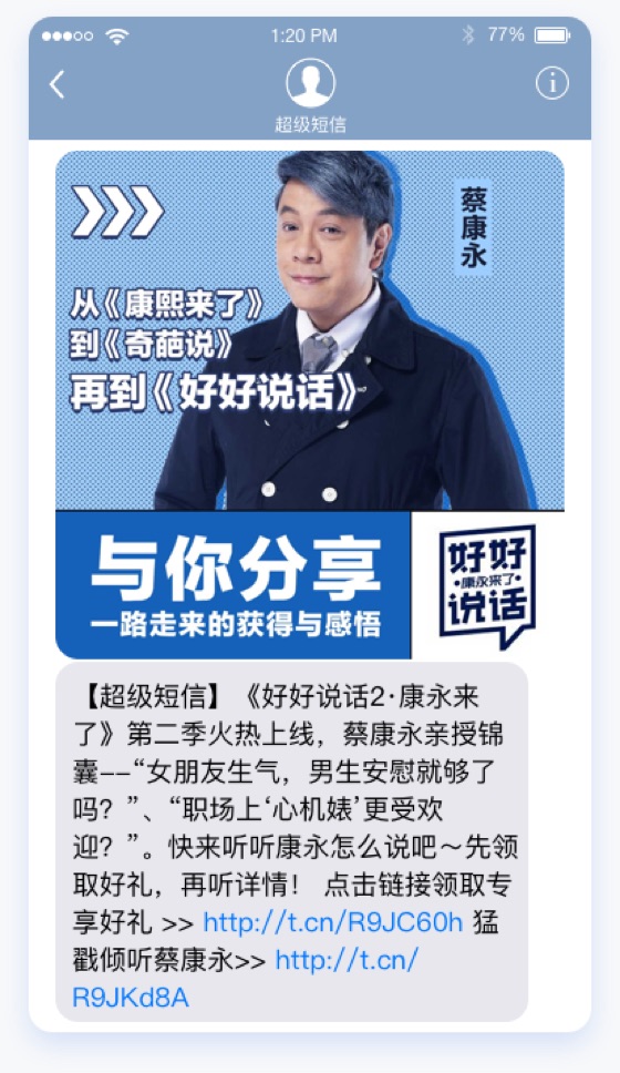 超级短信升级传统短信能力,实现大容量富媒体内容传播