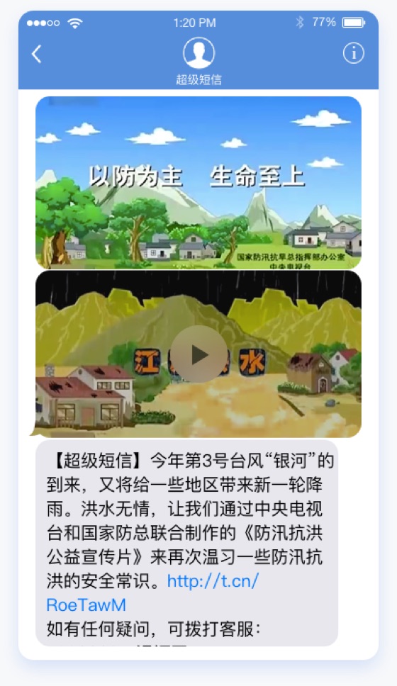 江南梅雨季节,经常山洪爆发,为了减少人员伤亡,针对市民宣传防洪公益类常识,使用超级短信下发,信息普及更为高效直接。